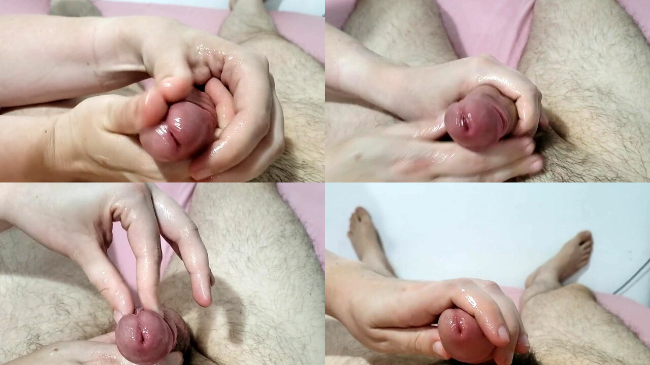 Handjob on the frenulum. Intense orgasm with edge and pre-cum
