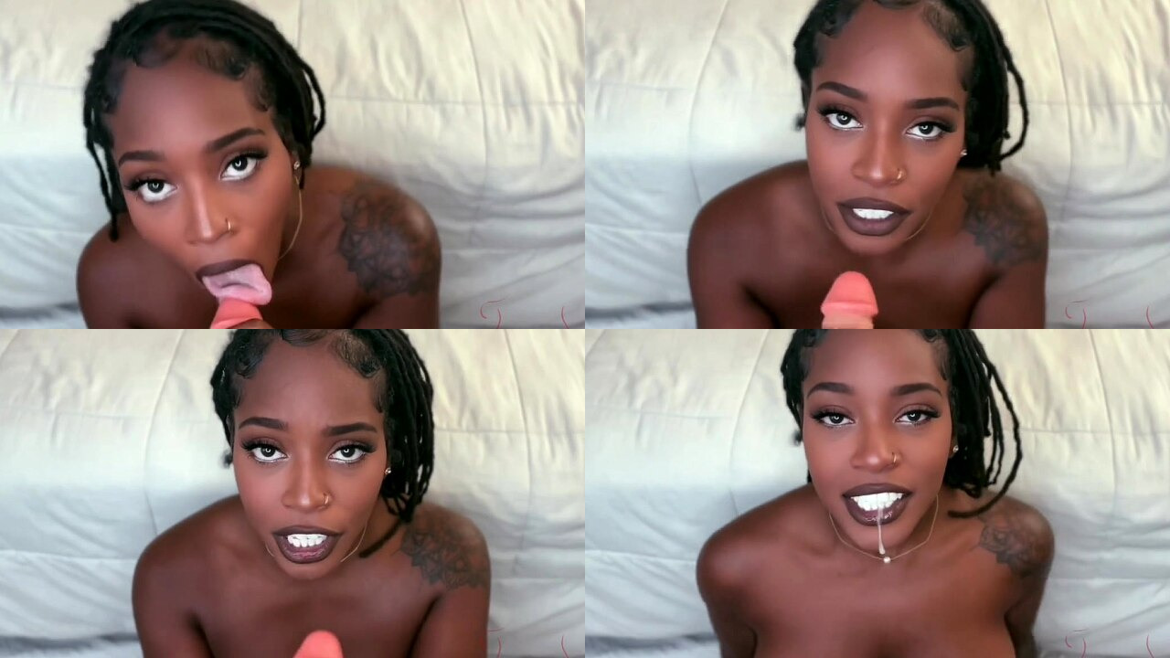 Ebony Cock-Worshipper Gags and Sucks Until Cum